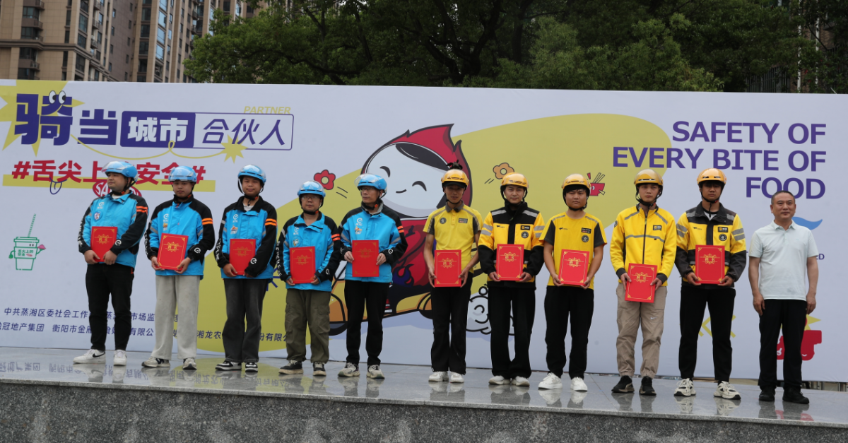 ▲10位騎手被聘任擔(dān)任蒸湘“食安吹哨員”